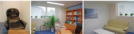 院内の待ち合い室には、リラックスしてもらえる様に環境ビデオを見れるテレビや自由に体験できるボディソーク装置、絵画などがあります。また、院内は、アロマの香りがするため、心身ともにリラックスできる環境にあります。
